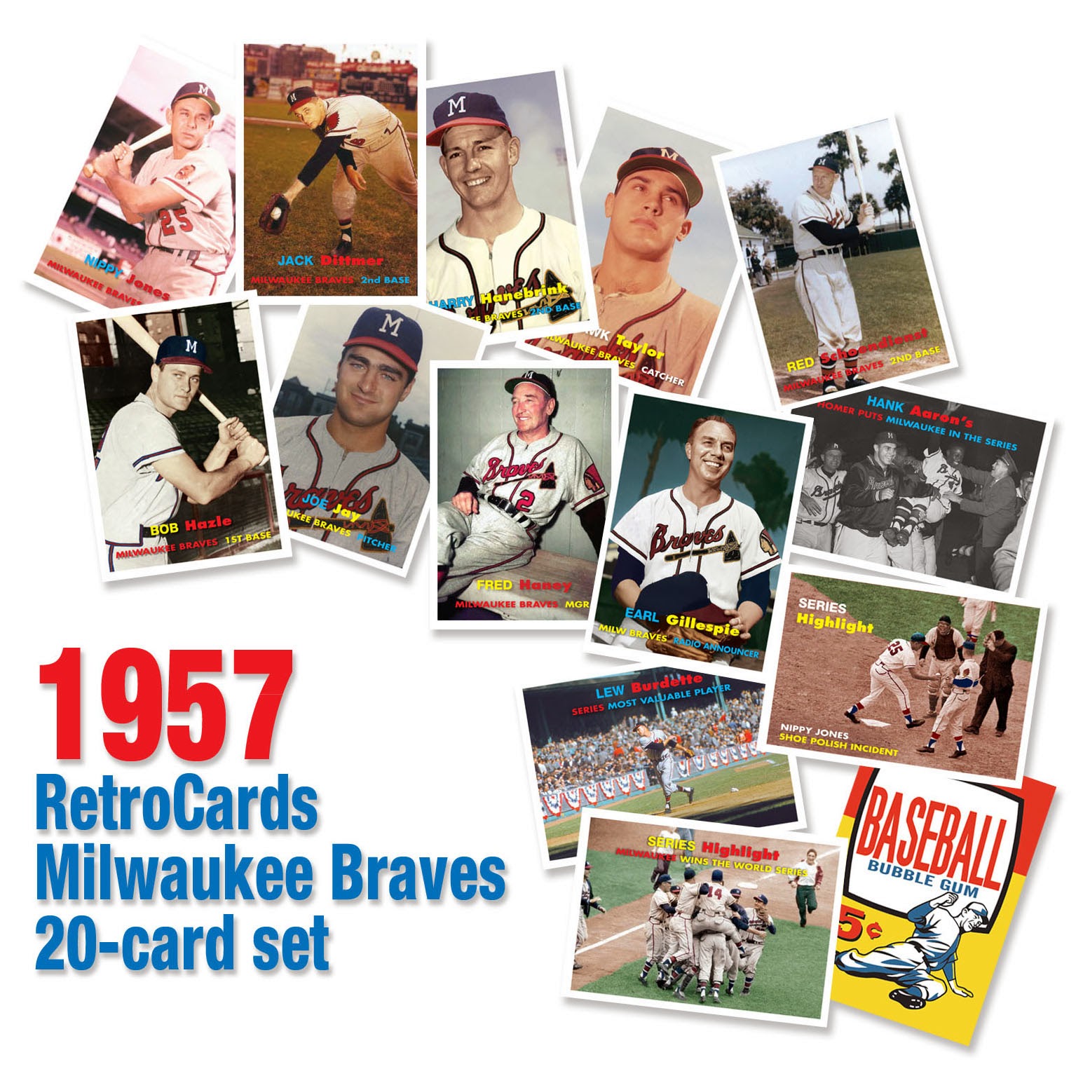 Books have been written about Milwaukee’s love affair with the Braves and the heartbreak the city went through when they left for Atlanta in 1966. The arrival of the Milwaukee Brewers in 1970 quelled the pain but there is still a very special spot in the hearts of many Wisconsinites for their Braves. Milwaukee’s only World Series Victory came in 1957, when they toppled the mighty New York Yankees and RetroCards fittingly has chosen the ’57 Braves as their first Baseball set with a special 20-card collection.