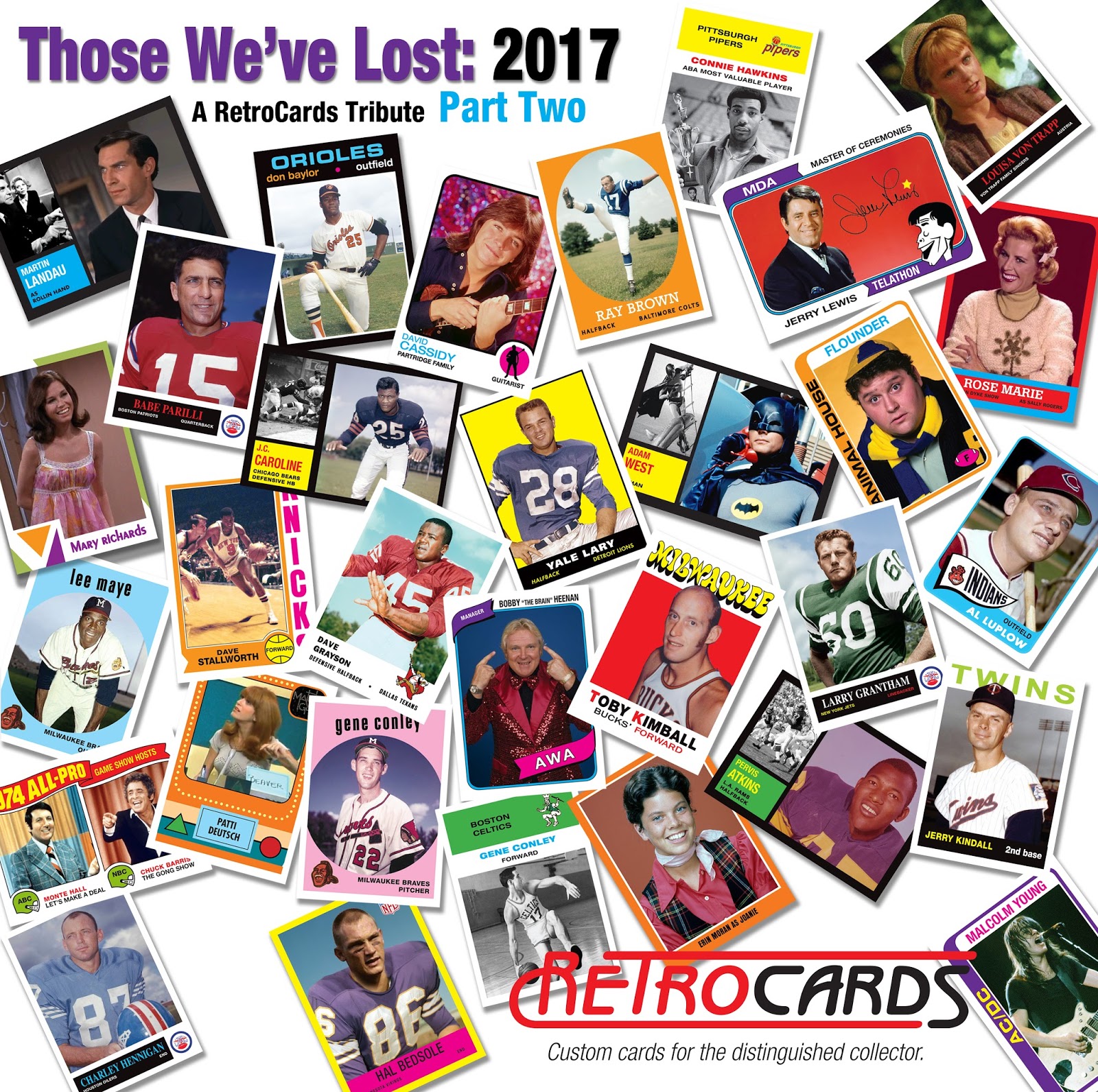 Part Two of RetroCards "Lost In 20017" continues with a cache of "cards that never were." This entry picks up where Part One left off with some obscure sports players shown on cards you've never seen before as well as several beloved pop culture figures that are quite recognizable. Here are the honorees from both posts: