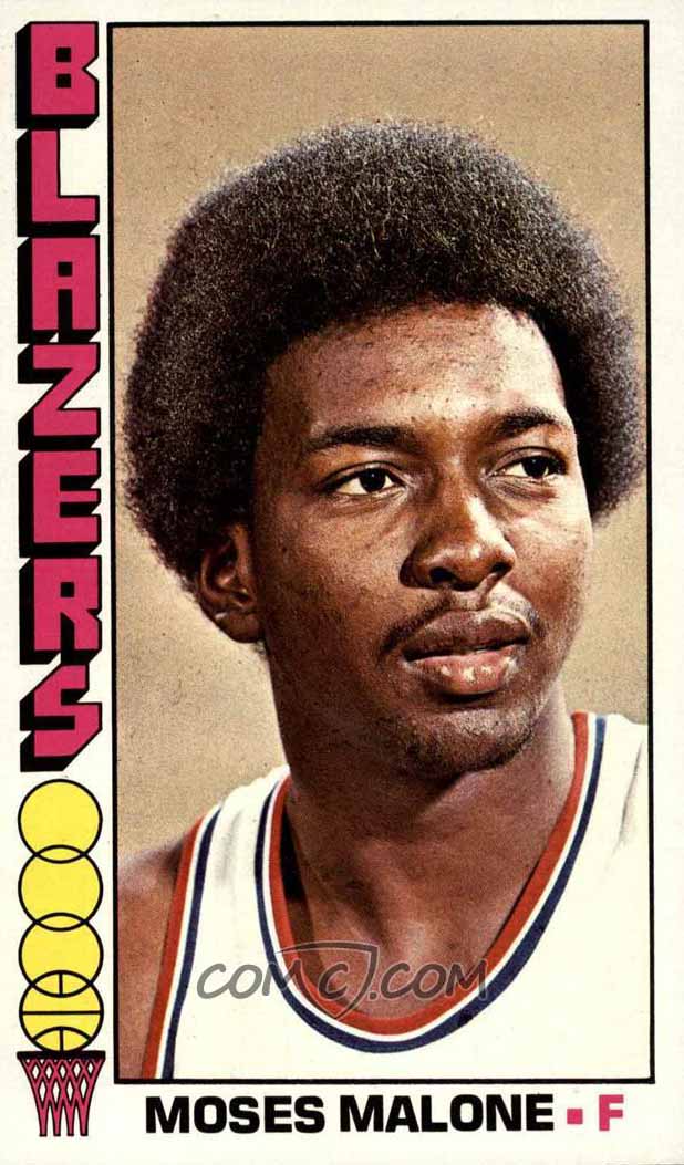 The first player to enter Pro Basketball straight out of high school, Moses Malone was one of the great proto-typical centers in the NBA. Having signed a letter of intent to attend the University of Maryland in 1974, he was drafted by the ABA's Utah Stars, who he signed a $1 million contract with. The Stars folded the following year and Malone signed with the exciting Spirits Of St. Louis, where he played for one season as well. At that point the ABA-NBA merger happened and Malone was placed in the dispersal draft despite his NBA rights being owned by the New Orleans Jazz. He was selected by the Portland Trailblazers and had an impressive pre-season but he was traded to the Buffalo Braves prior to the first game of the 1976-1977 season. After two games with Buffalo, he was traded again, this time to the Houston Rockets where he would spend the next five seasons.