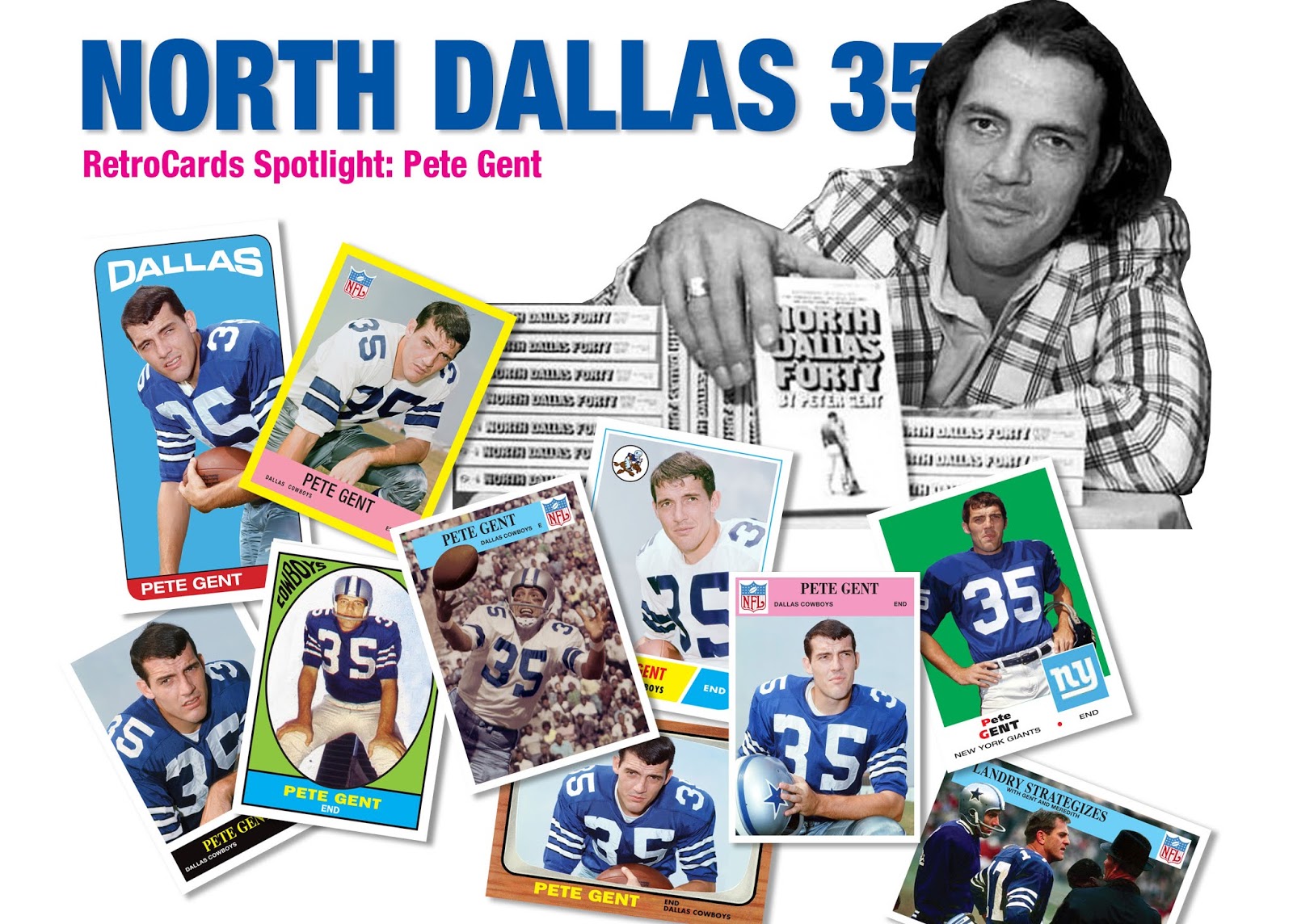 His first novel North Dallas Forty came out in 1973 and the film of the same name in 1979. The two main characters were based largely on himself and Don Meredith. He died from a pulmonary disease in 2011. Surprisingly, Gent never had a card so RetroCards has righted that wrong with new custom cards of old number 35. You'll find them in several Cowboys teams sets at RetroCards.net.