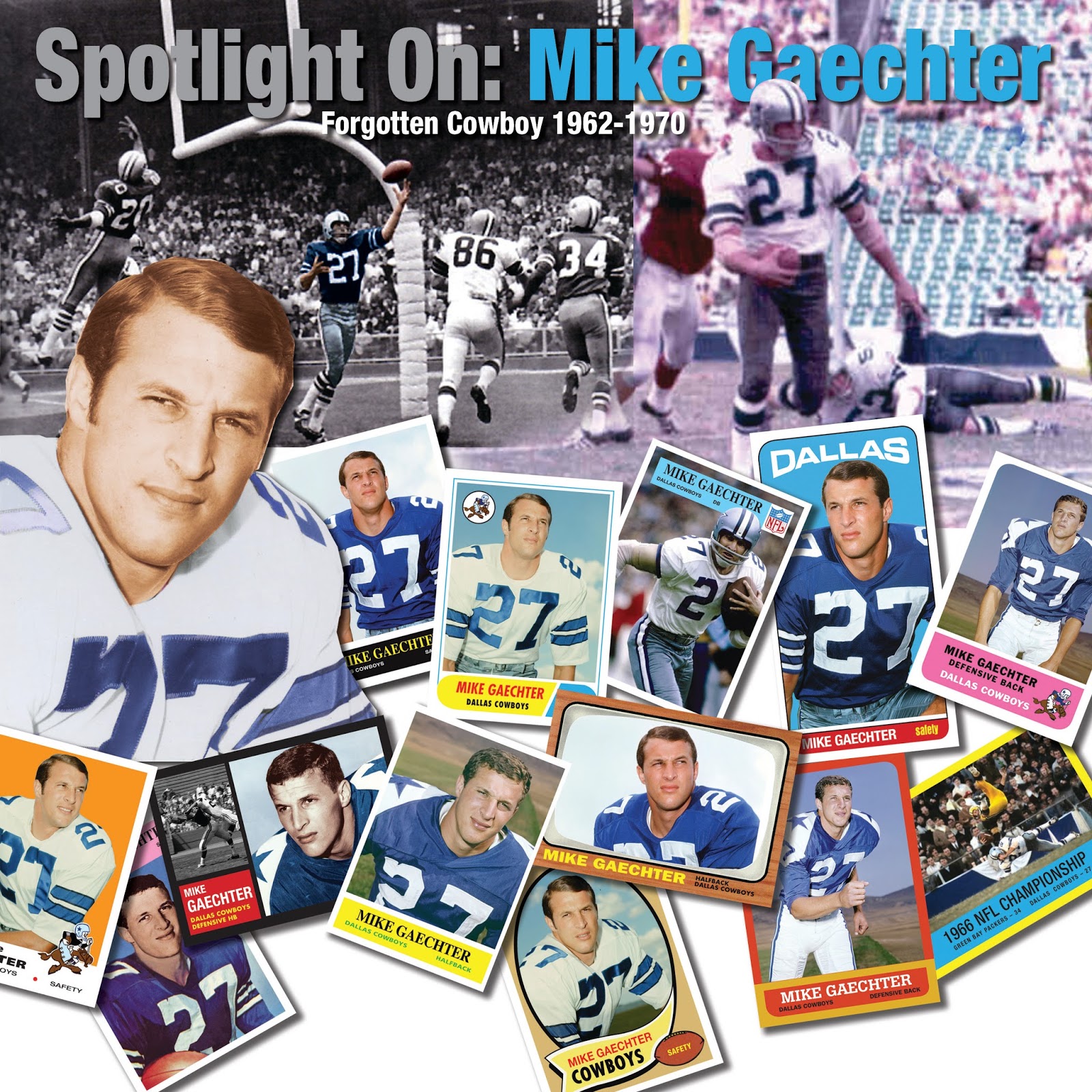 The 1960s Dallas Cowboys had many stars and up-and-coming players that are well known to fans and football lovers. However one player that has escaped attention is Mike Gaechter, who had a solid 9-year career starting in the Cowboys defensive secondary. Only four other Cowboys were fixtures on that defense over that same span: George Andrie, Chuck Howley, Cronell Green, and Bob Lilly. Gaechter (pronounced: `Gek-ter) was a play maker and punishing hitter, who played at a Pro Bowl level, yet never was elected. Eagle star receiver Pete Retzlaff said of him, "If I had him on me every Sunday, I would have gotten out of this business a long while ago."