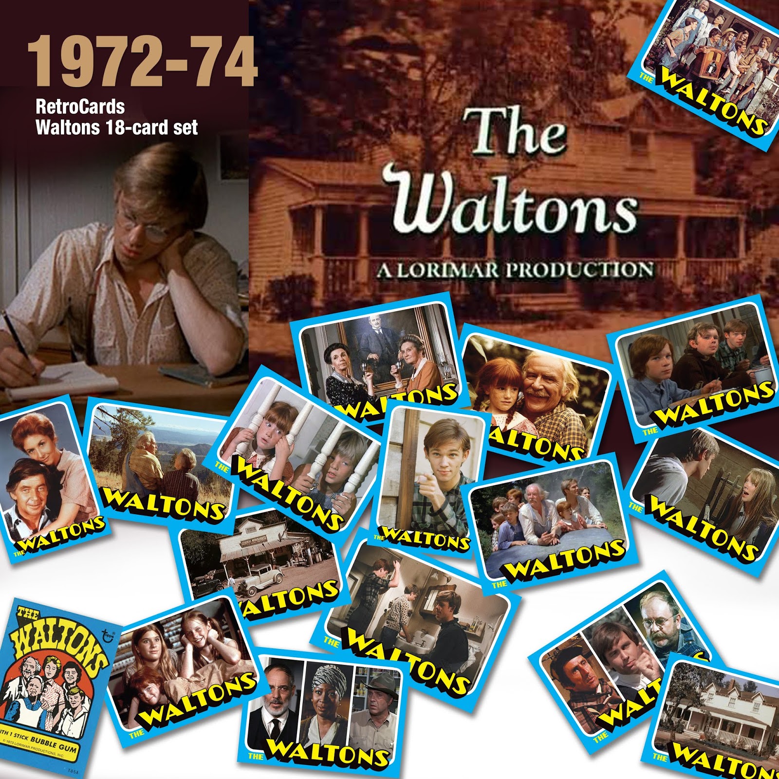 RetroCards has created their own set based on the original design, changing the hot pink borders to light blue. This 18-card set features characters and episodes from the first two seasons as well as a wrapper card of the original test set. Fiscally challenged collectors will now be able to afford to get the John-Boy rookie card in this attractive new set. Familiar faces include the Walton family, the Baldwin Sisters, Ike Godsey, a young John Ritter as the Reverand, a wrapper card (from the original test set) and more! Get yours here!