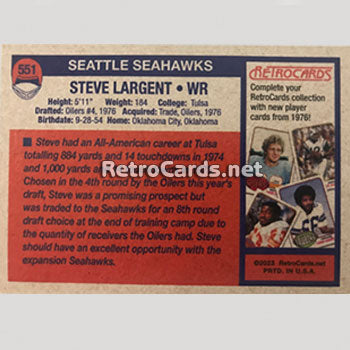 This 9-card set features Seattle Seahawks players that were in training camp in 1976 and or made the team for their inaugural season in the NFL. Cards include Dave Brown, Jim Zorn, Don Dufek, John Leypoldt, Mike Curtis, Sam McCullum, Ahmad Rashad, Steve Largent and a card of the new Kingdome.